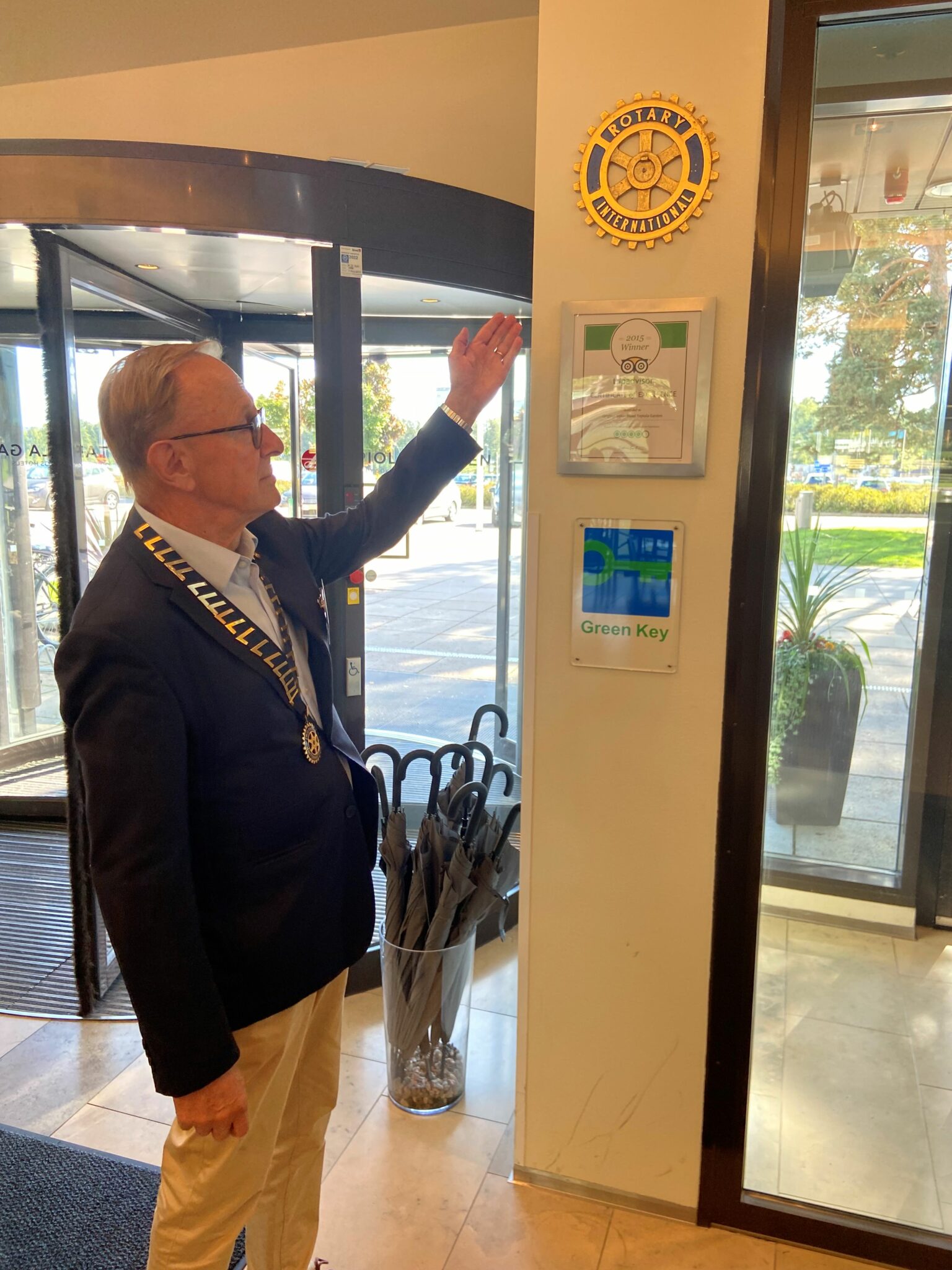 Rotary-merkki asennettiin Garden- hotellin aulaan. Merkki kertoo, että hotellissa kokoontuu rotaryklubi, Gardenissa jopa useampi. Merkki on takeena myös ruoan hyvästä laadusta ja asiakaspalvelusta. Kiitos Tapiolan Garden- hotelli vuosien yhteistyöstä.