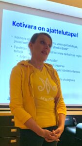 Marjukka Mikkola, aktiivimartta ja kotivarakouluttaja Uudenmaan martoista, oli klubikokouksessa vieraana 3.10. 2025. Hän kertoi meille kattavasti ja ytimekkäästi kotivarasta. Tärkeää on, että kotoa löytyy puhdasta vettä. Ruokaa ja juomaa pitäisi löytyä kaikilta 72 tunniksi. Kotivaraan sisältyy myös muuta varustusta taskulampuista kannelliseen ämpäriin. Hyvät luettelot ja ohjeet kaikkeen varautumiseen löytyvät nettisivuilta 72tuntia.fi. Tämän materiaalisen varautumisen rinnalla on tärkeää myös henkinen varautuminen. Tärkeää on myös huolehtia muista kriisitilanteissa. Naapureihin onkin syytä tutustua, jotta yhteistyö tarvittaessa sujuisi hyvin. Monipuolinen kotivara-ajattelu onkin osa kokonaismaanpuolustusta, jossa Suomi on maailman johtavia maita.