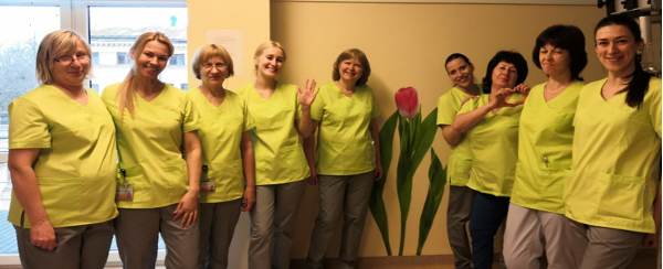 Riian NICUssa on noin 70 hoitajaa. Työolot ovat vaativat. Hoitohuoneiden lämpötilan tulee olla muutama aste normaalia korkeampi ja hoitajan työvuoro kestää 24 tuntia. Olosuhteiden vaatimusten mukaisen työasun hinta (noin 60 euroa) on merkittävä osa hoitajan kuukauden palkasta. Oikeanlaisella työasulla voidaan lisätä työssä jaksamista, mikä vähentää virheitä. Asullaan vaikuttaa suotuisasti työilmapiiriin ja helpottaa pienokaisten vanhempia tunnistamaan työntekijät.