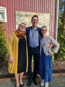 Klubin presidentti Tom Lindqvist ja ja tuleva presidentti Hanna Laine ovat vastaanottaneet PHF:t käätyjen vaihtotilaisuudessa 13.6.2023 Liedon Ilmaristen matkailutialla.