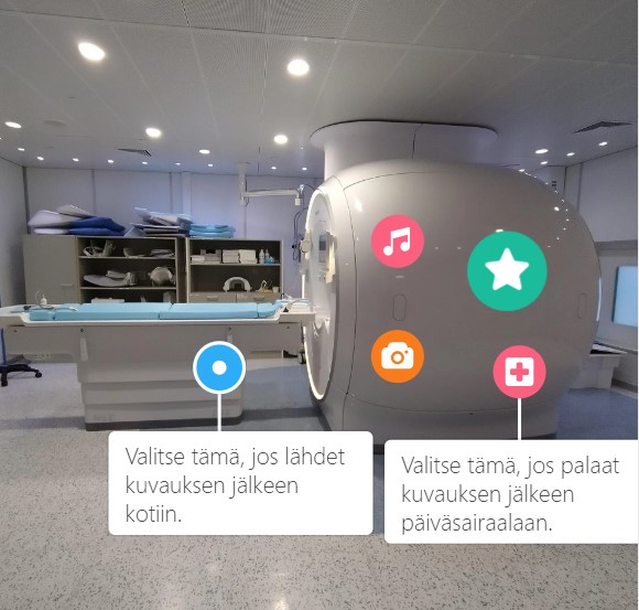 Sovelluksen avulla lapsi ja perhe pääsevät ottamaan tuntumaa sairaalassa käyntiin. Matka alkaa parkkipaikalta kulkien sairaalan aulan ja hissin kautta toimenpidehuoneisiin saakka ja takaisin. Matkalla tutuksi tulevat ilmoittautuminen ja toimenpiteet sekä niissä käytettävät laitteet.